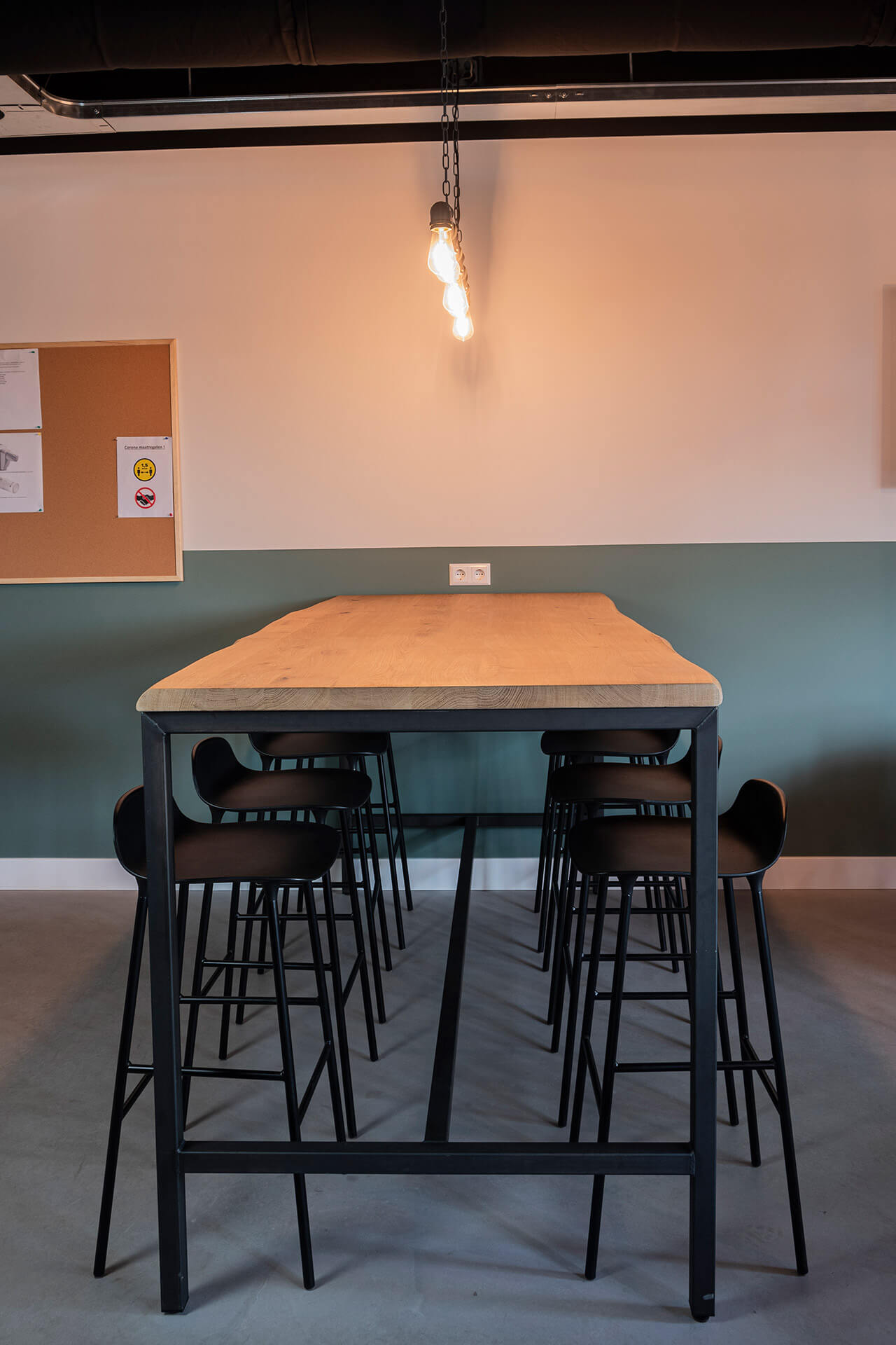 Dat een bedrijfskantine veel meer kan zijn dan een praktische en vaak ongezellige ruimte, bewijst dit project voor Warmerdam Installatechniek in Noordwijkerhout. We vertaalden de interieurideeën van de klant en zijn dochter in een complete eigentijdse inrichting en afwerking op maat. Industrieel en stoer, met natuurlijke elementen.