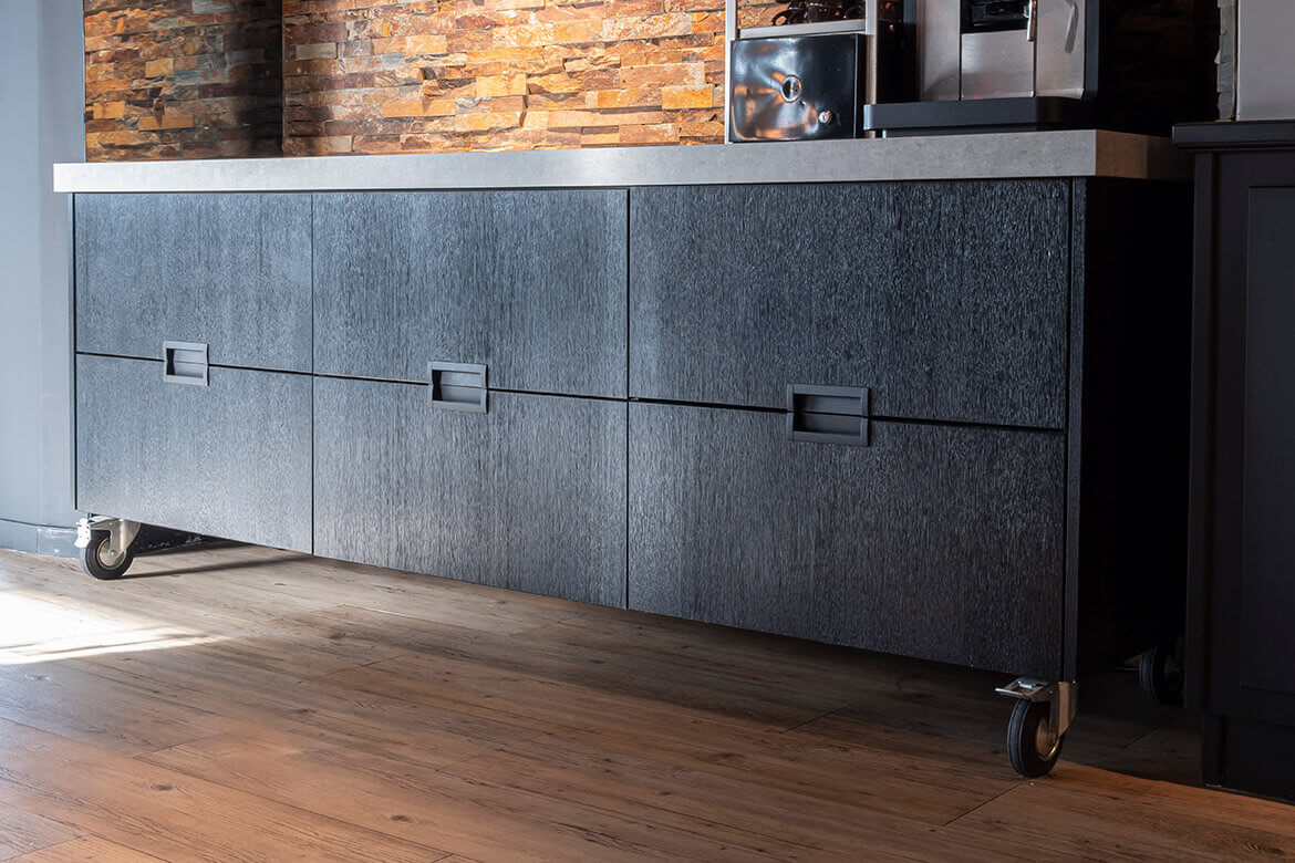 Voor het vervaardigen van kwalitatieve kasten op maat gebruiken we de mooiste materialen, met de beste eigenschappen. Massief hout, mdf, kunststof, metaal, glas; op basis van het ontwerp selecteren we de best passende optie. Ook voor scharnieren en ladegeleiders kiezen we voor topkwaliteit, o.a. van Blum. En de afwerking is de finishing touch. Van ultramat zwart tot hoogglans spuitwerk in alle kleuren; uw smaak is maatgevend.