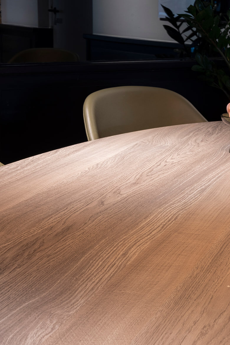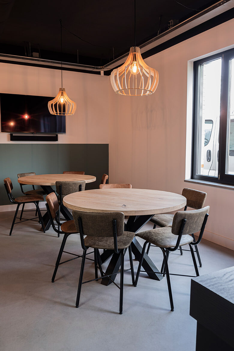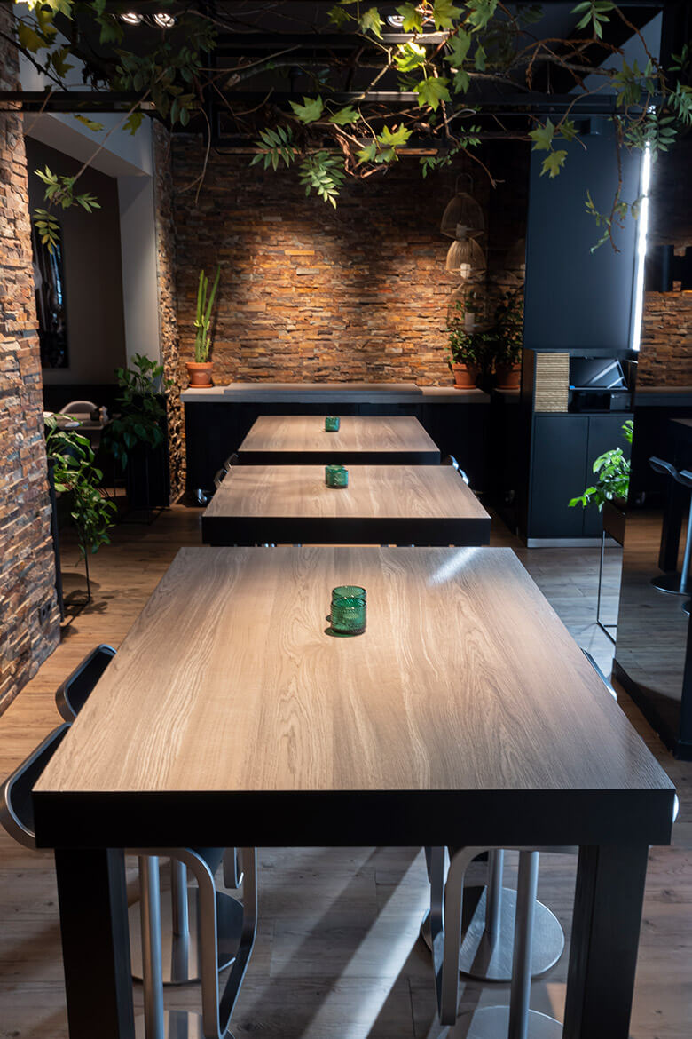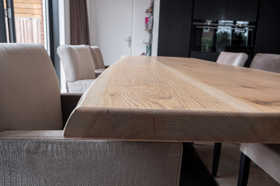 Naast maatwerkoplossingen voor woningen, realiseren we ook bedrijfsmatige projecten. Wat denkt u van een royale vergadertafel op maat? Met bijvoorbeeld een robuust boomstam-tafelblad met schorsrand. Een balie in de ontvangstruimte. Tafeltjes met vaste banken in de bedrijfskantine, zoals in een Amerikaanse diner. Doordat we maatwerk leveren, zijn er ook qua afwerking vele opties. Geïntegreerde ledverlichting, verspringend in vele kleuren, geeft een extra accent aan een barmeubel. Of bijvoorbeeld gecapitonneerde bekleding (à la Chesterfield) voor een vaste hoekbank in een restaurant.