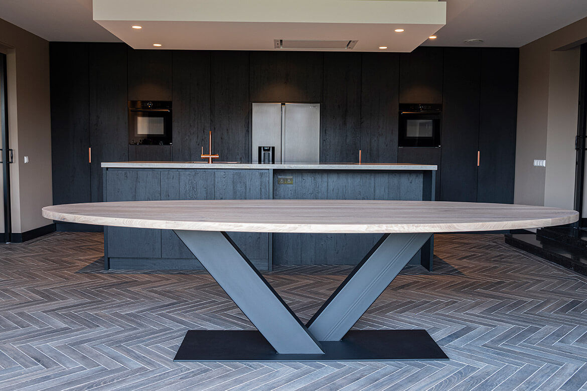 Naast kasten in alle soorten en maten en complete keukens zijn we gespecialiseerd in meubilair op maat. Denk aan een robuuste tafel met een stalen poot. Een sfeervolle bar. Een geïntegreerde eettafelbank. Of die fraaie balie op kantoor.